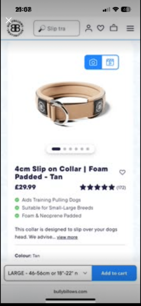 Posting for 12+ yearsBrand new Bully Billows khaki 4cm Slip on collar size Large to fit 46-56cm