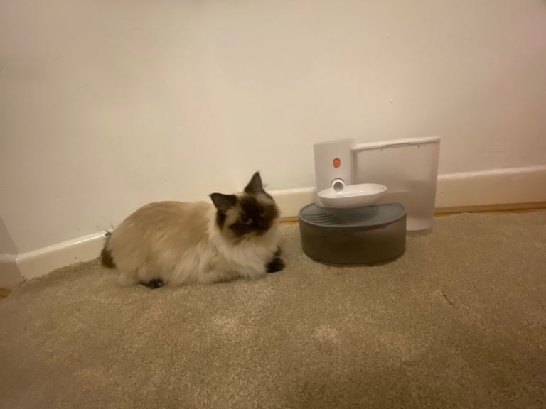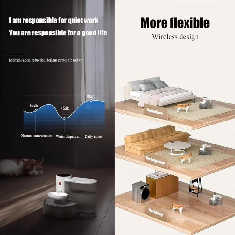 Quiet automatic water dispenser for cats and small pets.