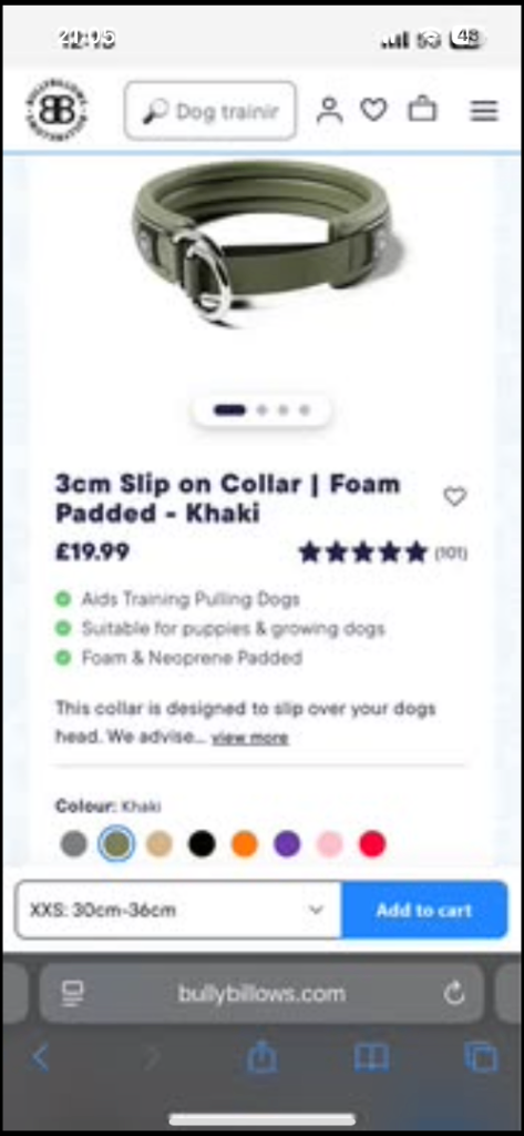 Posting for 12+ yearsBully Billows khaki 3cm slip on dog collar xxs to fit 30-36cm neck