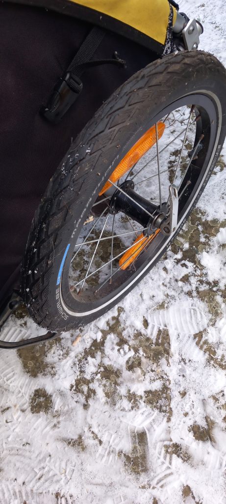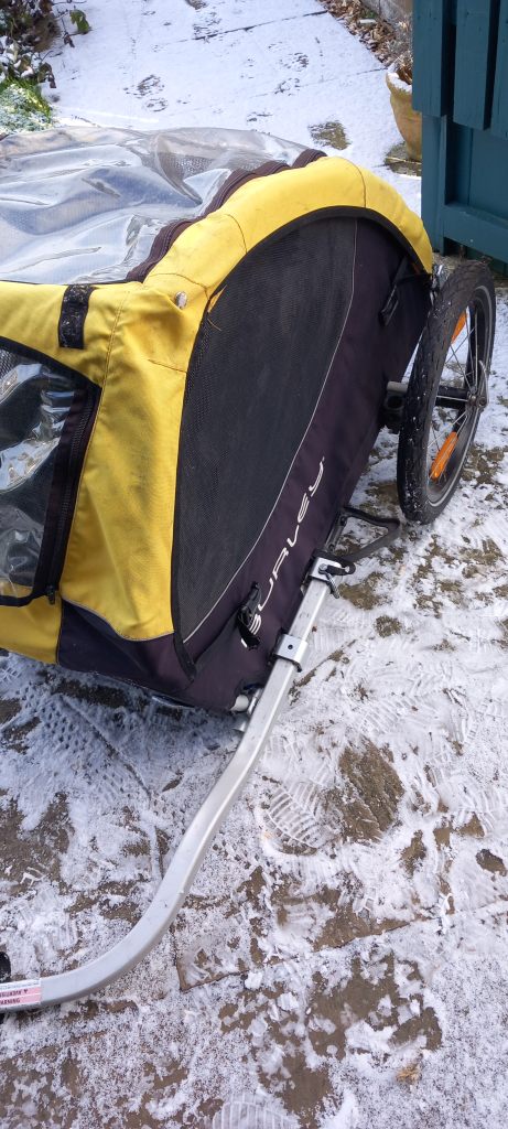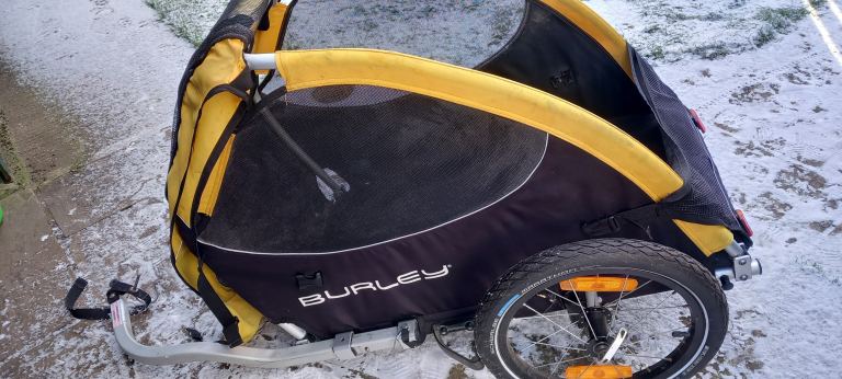 Good quality trailer for medium size dog - up to labrador size. Also has a flag and pushing handle not in photos. Tyres are new.