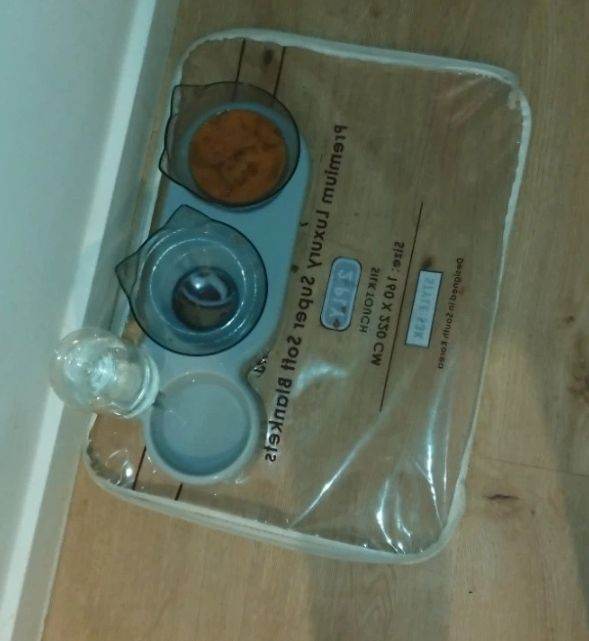Cat litter tray with mat, cat bowl & cat scratching post £10