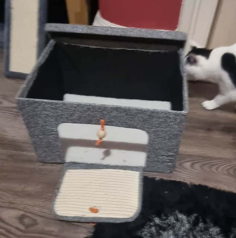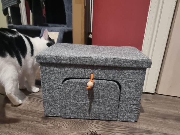2 cat beds grey one never used both beds very soft... hide away box bed with lif and closeable entrance.