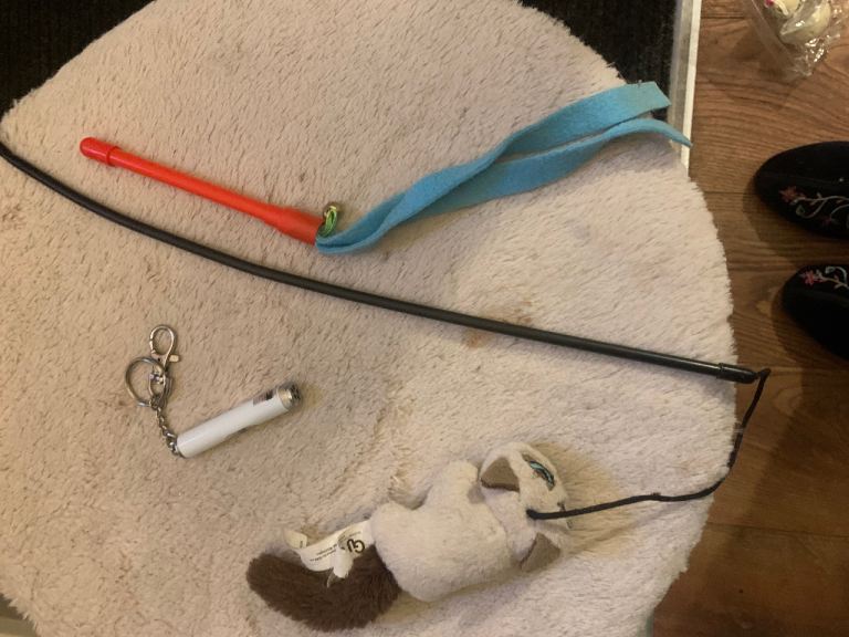 Laser toy, bell toy and chase toy.