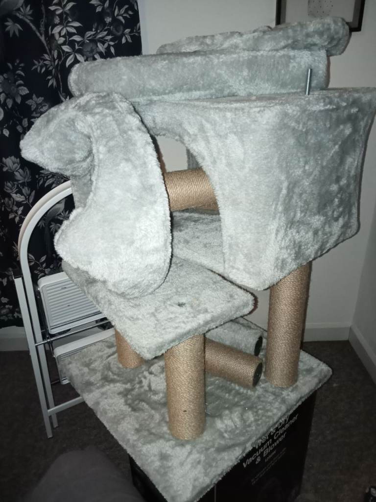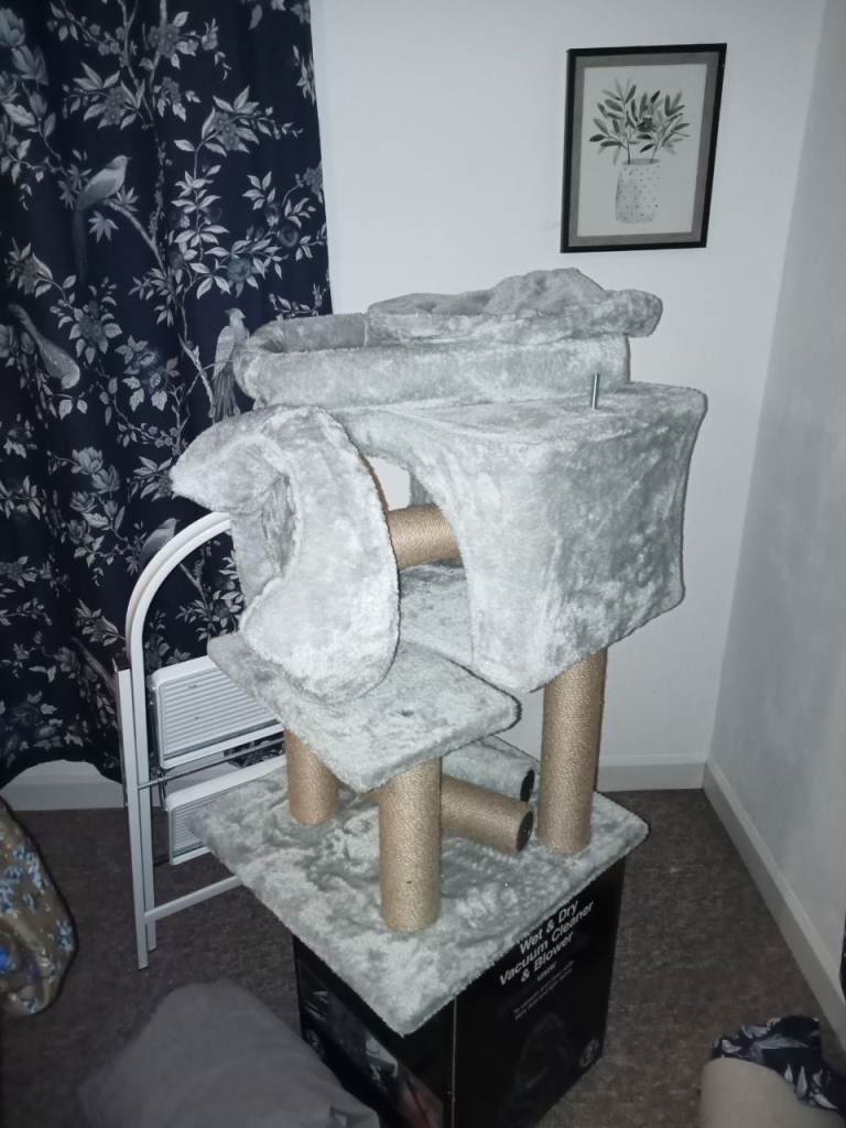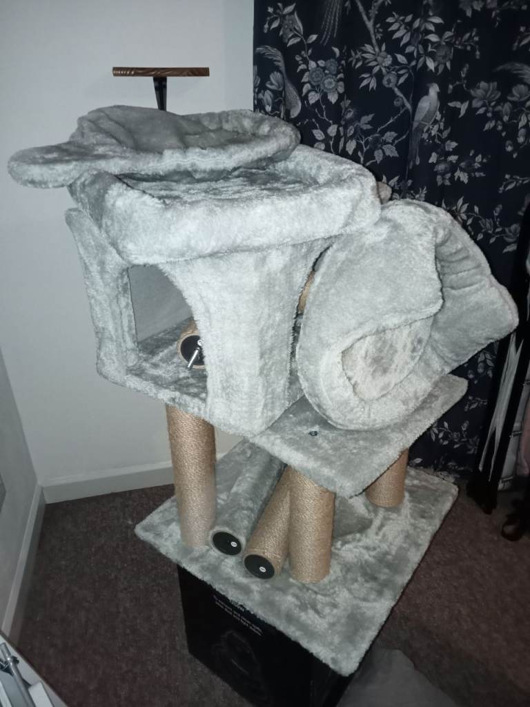 This cat tree has been dismantled for storage. All the pieces are there to put together as the picture. As new .Hardly used due to buying for a house cat that was staying for a few days. Very sturdy.