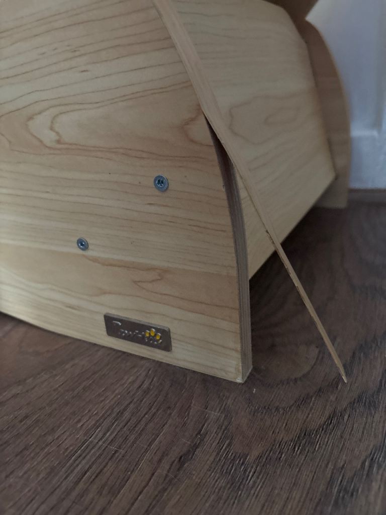 Wooden cat exercise wheel. Great condition - barely used due to a lazy cat (: small section needs gluing back due to knocking it with the hoover - see photo. Collection only. Open to offers.