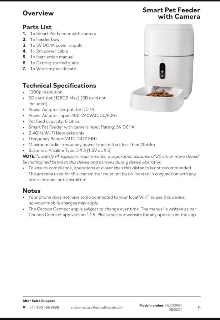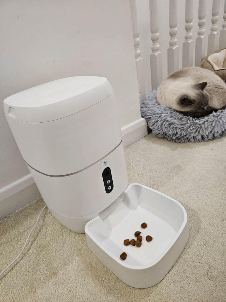 Automatic cat feeder with camera (including night vision), speaker and microphone.