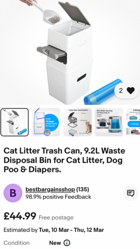 Posting for 15+ yearsCat Litter Disposal bin ~9.2L ~ 3 Rolls bin Liners & 6 Charcoal Deodoriser ~ NEW