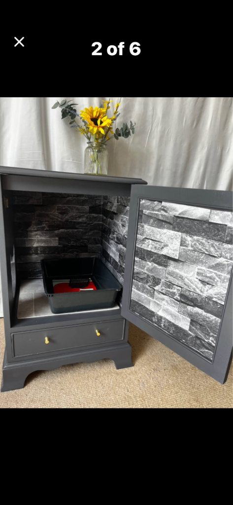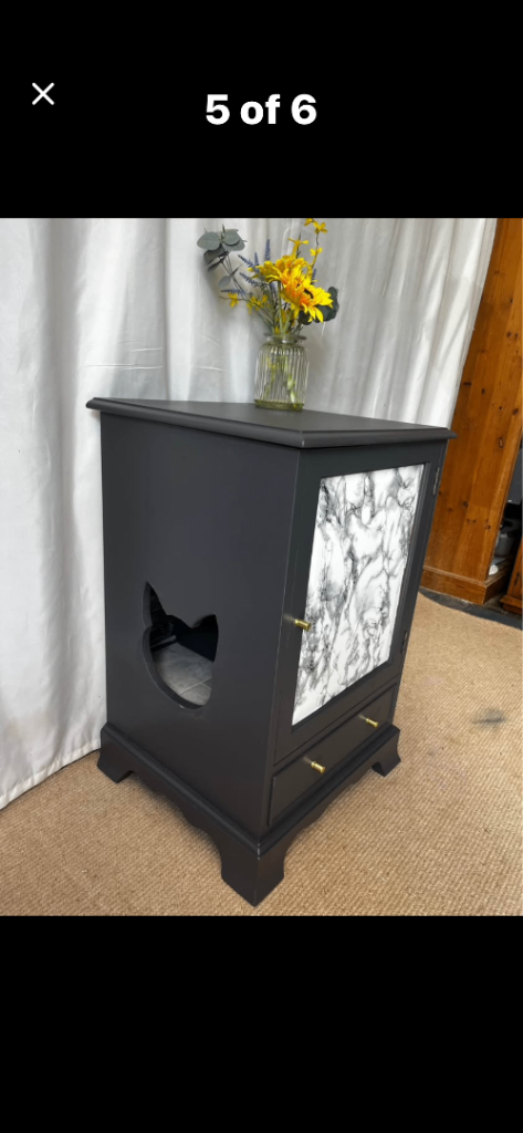 This beautifully upcycled cat loo cupboard is a smart and stylish solution for cat owners who want to keep their space looking tidy without compromising on their petβs comfort.