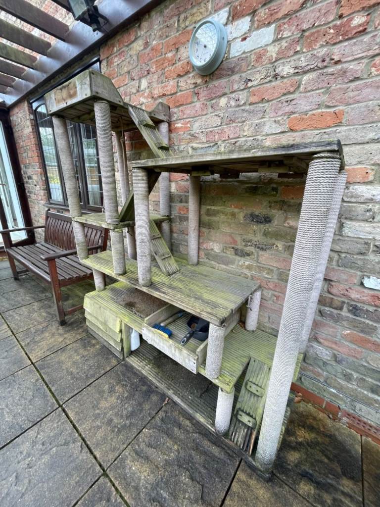 Outdoor large Cat Tree although looks old was still in use a few weeks ago will need a van to move it, if brought today its over £700... I would like a donation to my Sister Rescue Centre here in Surrey, that's all, a good rub down and paint if needed and there you go.