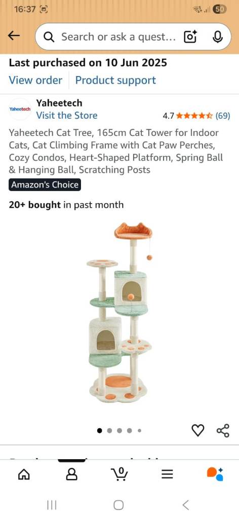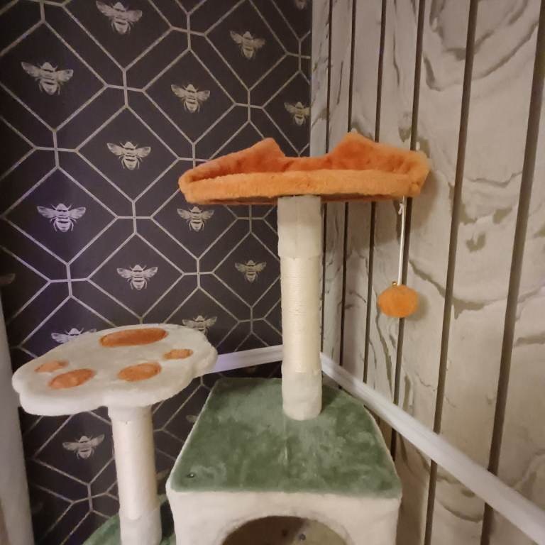 Cat tree tower less than a year old in good condition as it wasnt used very much has hides scratching posts good and sturdy £30