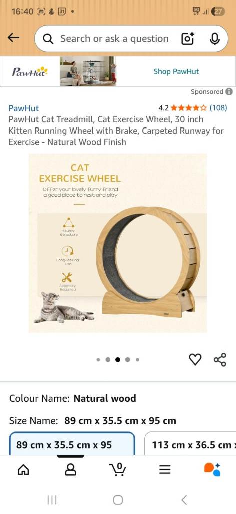 Comfortable: The inside of this cat running wheel is covered with a cloth-like material, which is soft on their paws.