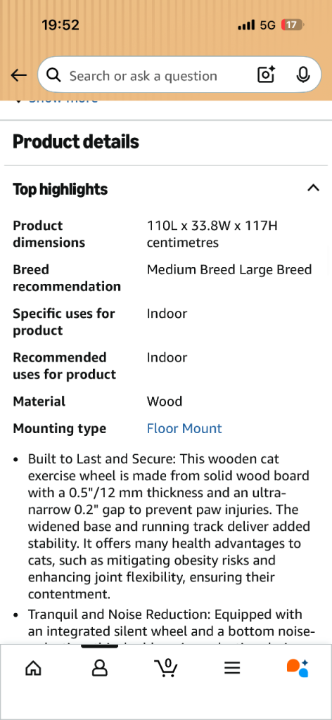 Wooden cat wheel; as you can see from the 2nd photo, my cat would rather use it as a bed than for exercise.