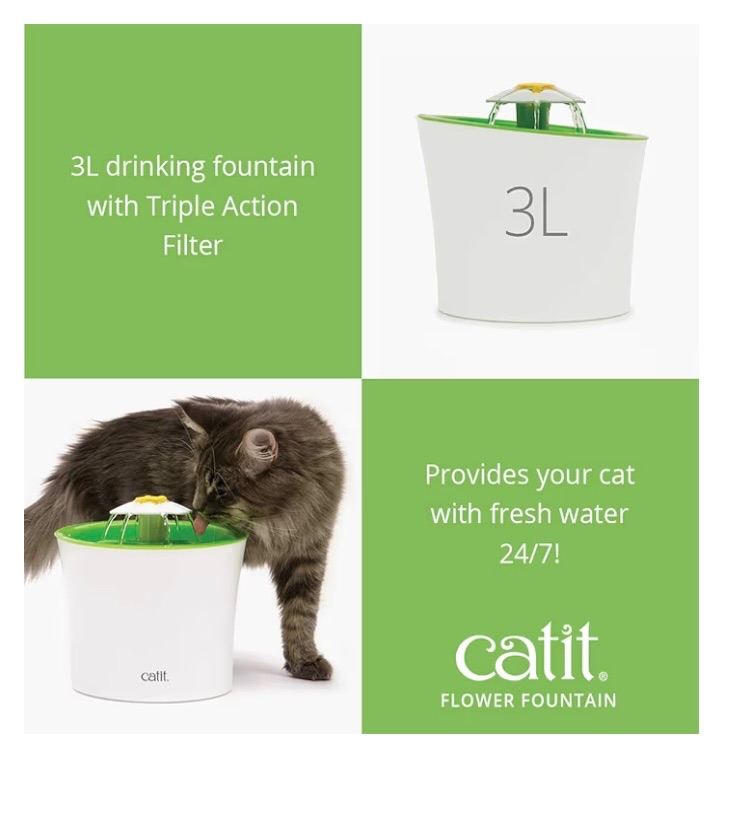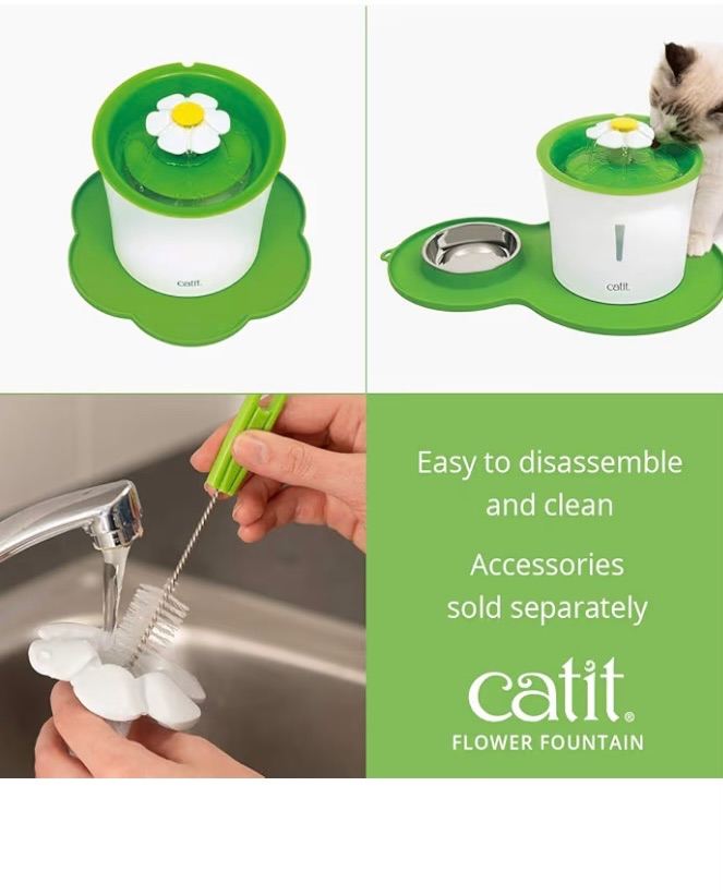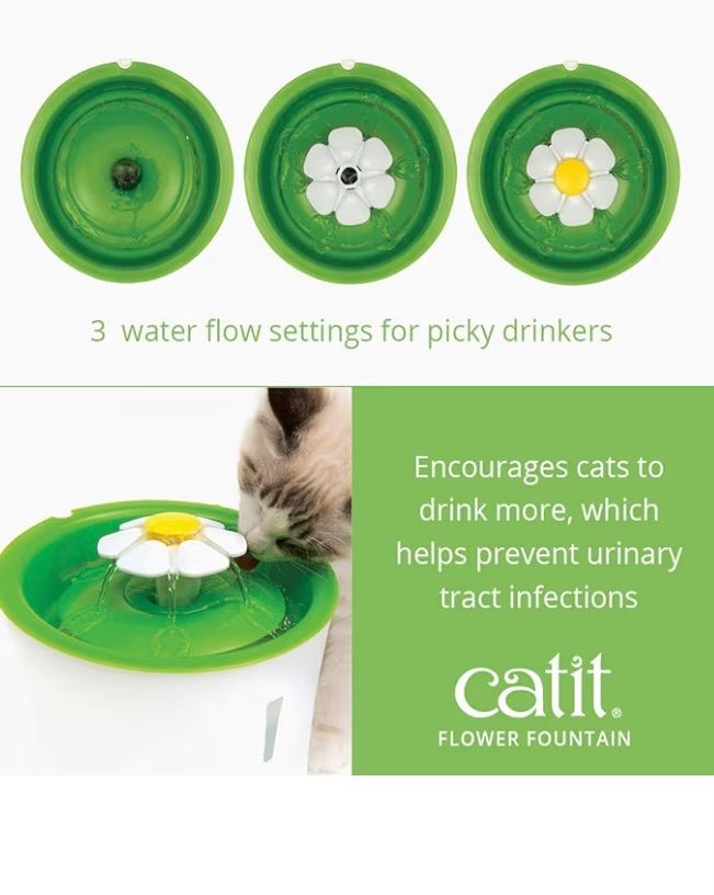 Very cute daisy drinking fountain which is fantastic to encourage your cat (or would suit a small dog) to drink water as it's filtered through replaceable filters which you replace every few months and there are flexible options for how the water flows to suit your cat or dogs preference.
