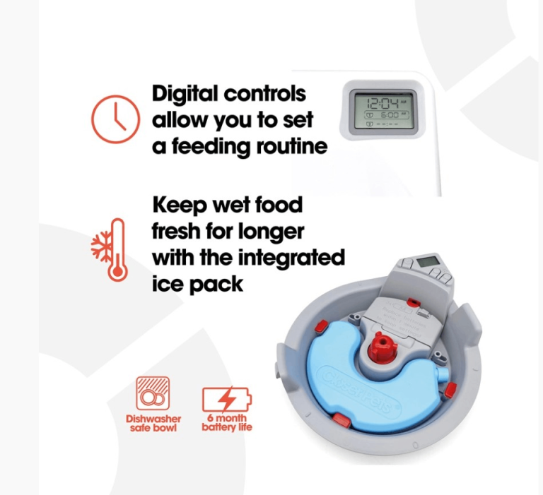 PERFECTLY TIMED MEALS: Digital timer allows precise scheduling of two individual mealtimes, with one bowl available immediately upon setup for convenience