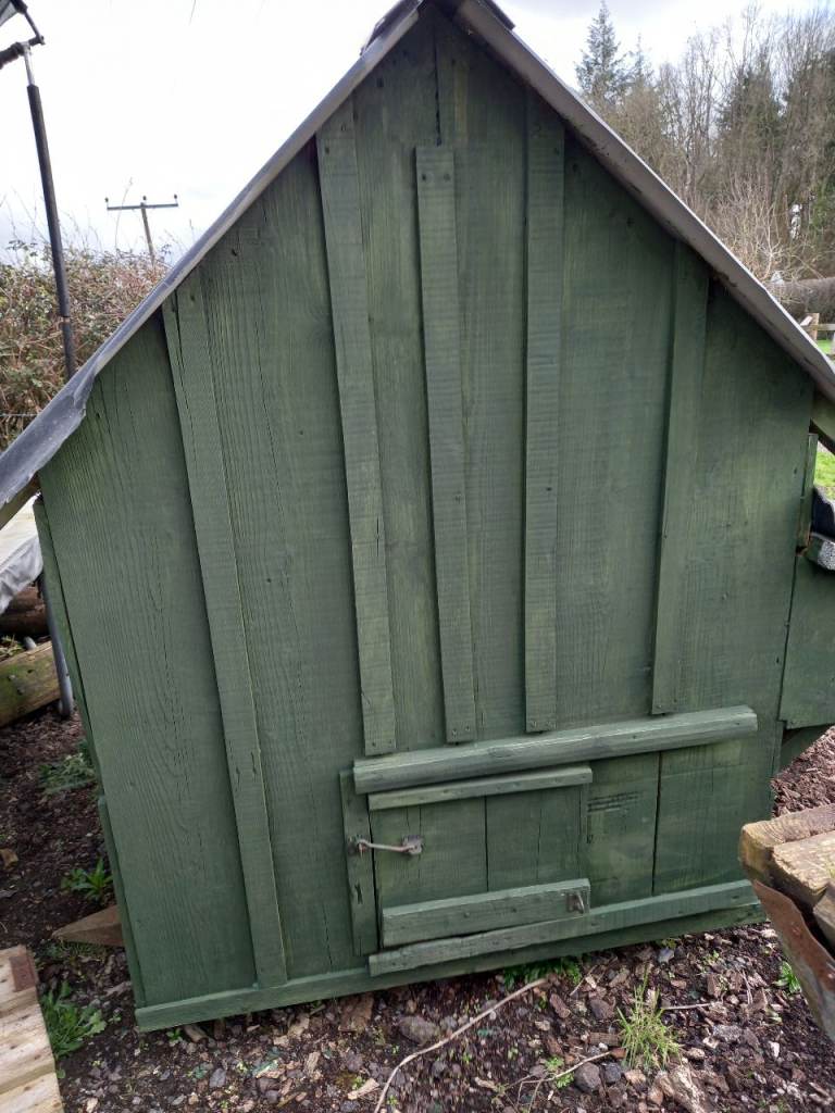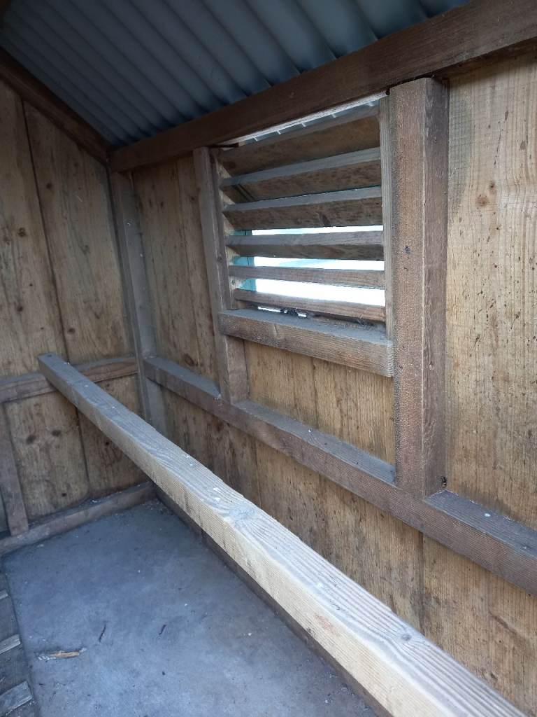 Approximate measurements 1.7 metres long, 1.6 metres wide including the nest box, 1.6 metres high.