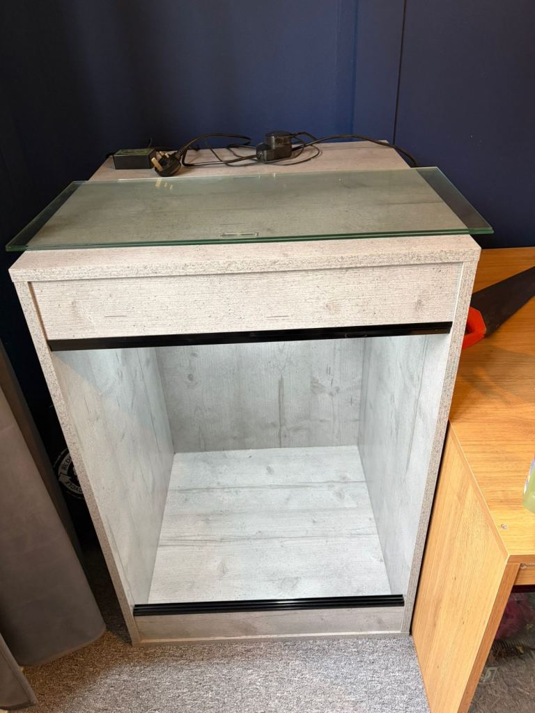 For sale on behalf of my parents is a Clearseal professionally custom built viv its 3ft high 2ft wide 2ft deep with silicone inside to save damage comes with a light, heater thermostat wood and fake plant 4 months old £150 collection only please text only on phone number
