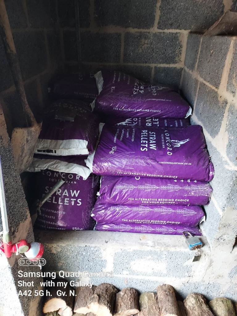 15Kg bags of biodegradable straw pellets for equine bedding - approx 40 bags available at discounted price of £6 a bag irrespective of the quantity you want.