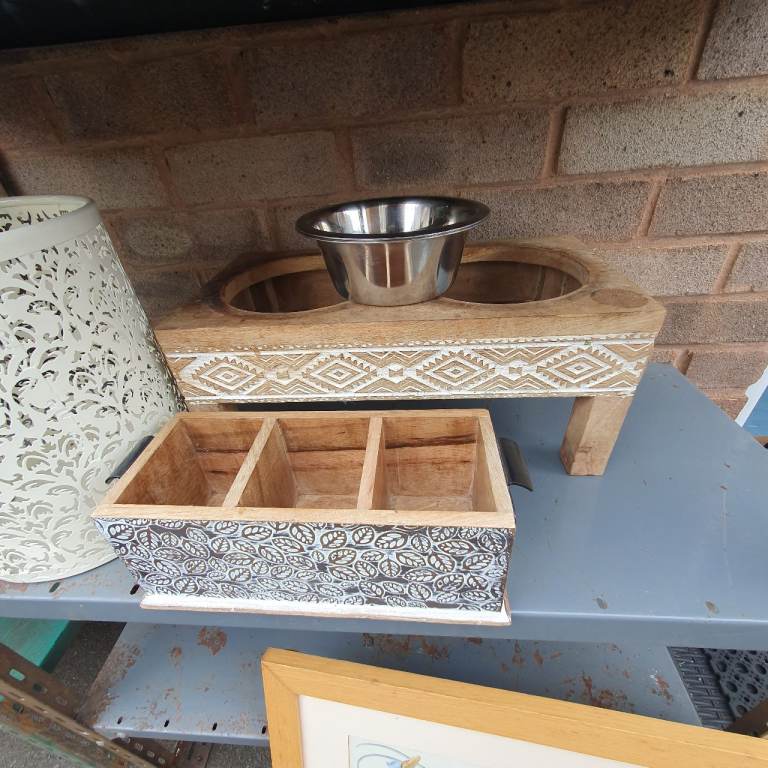 Decorative Dust Bin, Storage Boxes & Dog Food Stand , Good Condition, Very Useful, Attractive. Expensive when brand new, Quality, Great Decor. Collection from Russell's Hall, bargain £5.