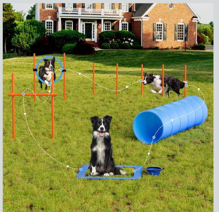 Posting for 8+ yearsDog Agility Equipment, 6PCS Agility Training Set with Dog Agility Tunnel