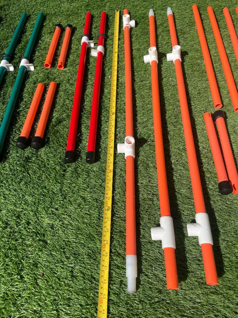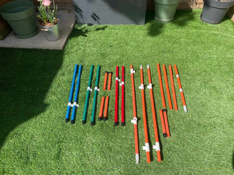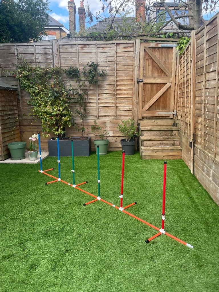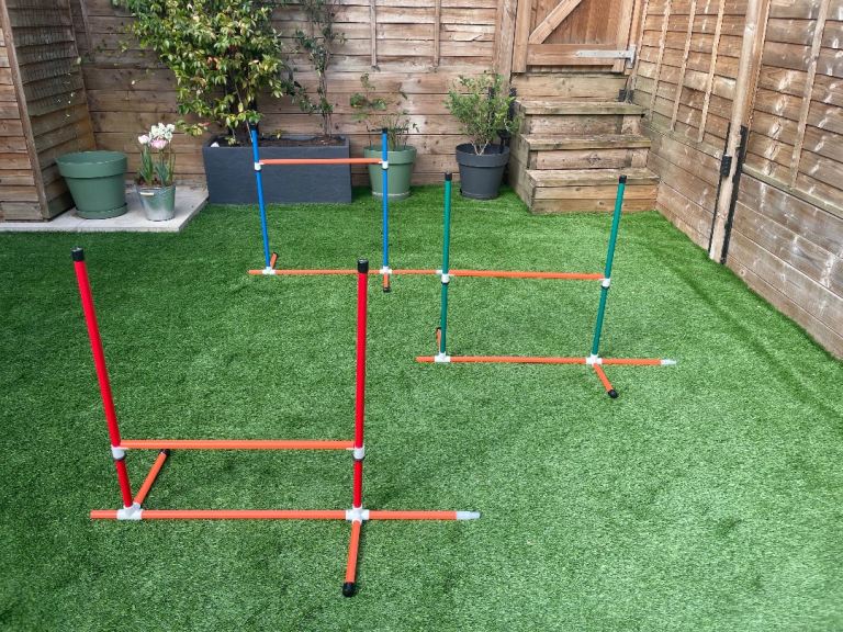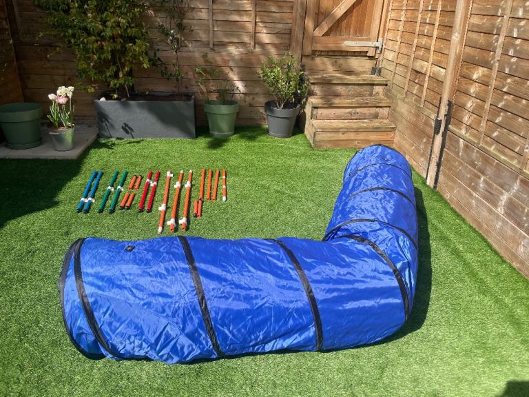 You can make up lots of different jumps / slaloms with the poles. Comes alongside a tunnel.