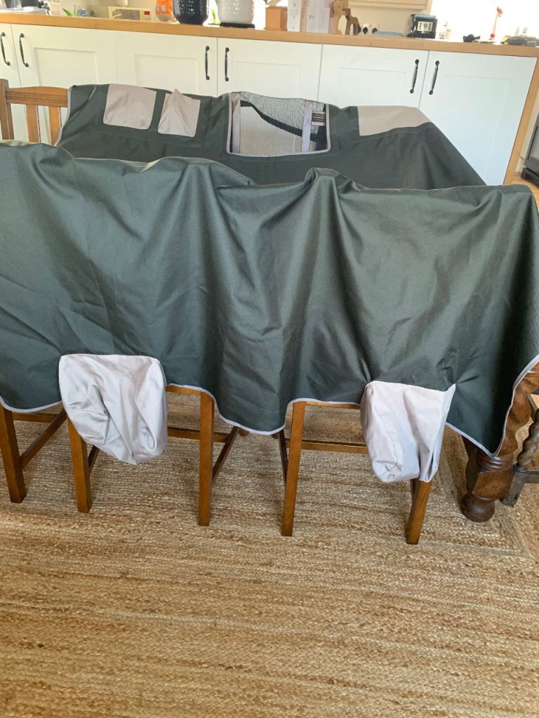 Large car seat cover for dogs.waterproof.never used! Width 56inch length 74 inches approximately.