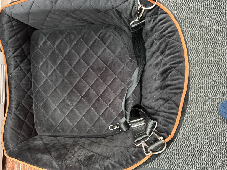 This dog car safety seat is nearly new. It’s been used 3 times by my PomChi. The cushion is very thick so the dog is higher to see out of the window. I paid £50 but I’m asking for £40 Ono. Cash on collection from SO18.