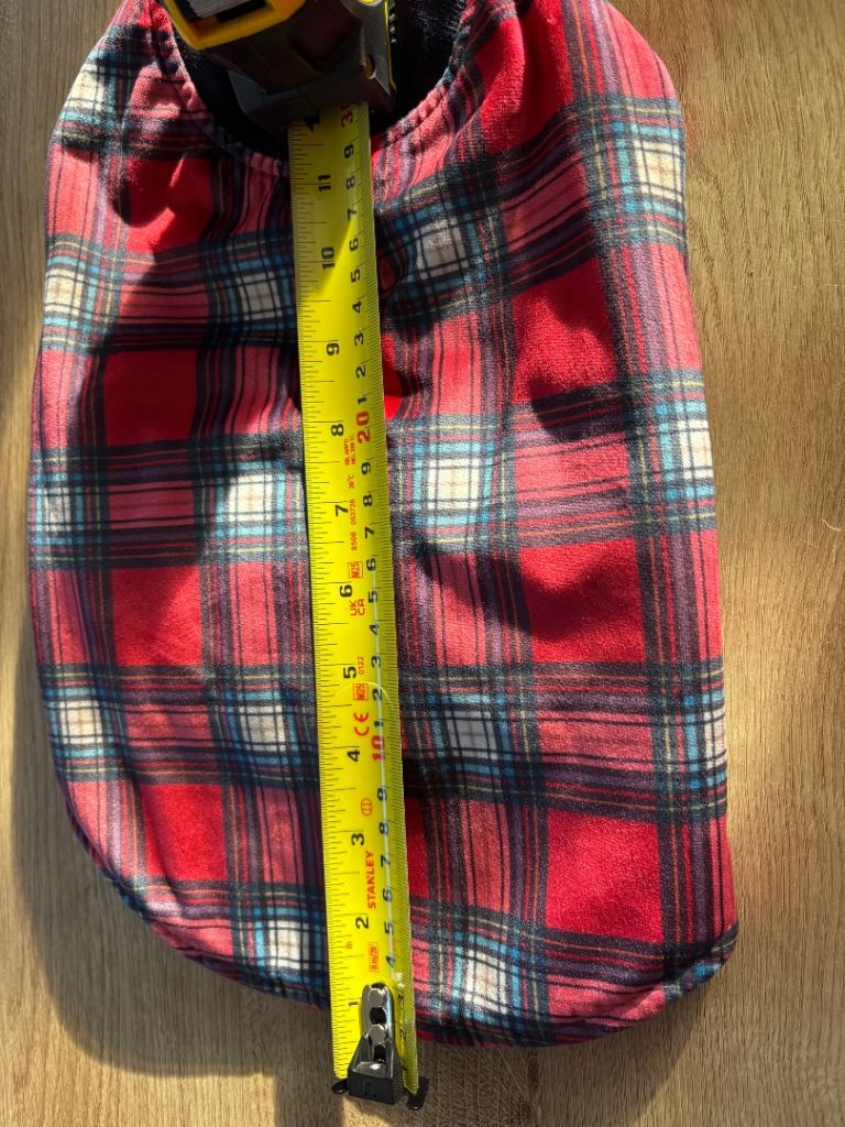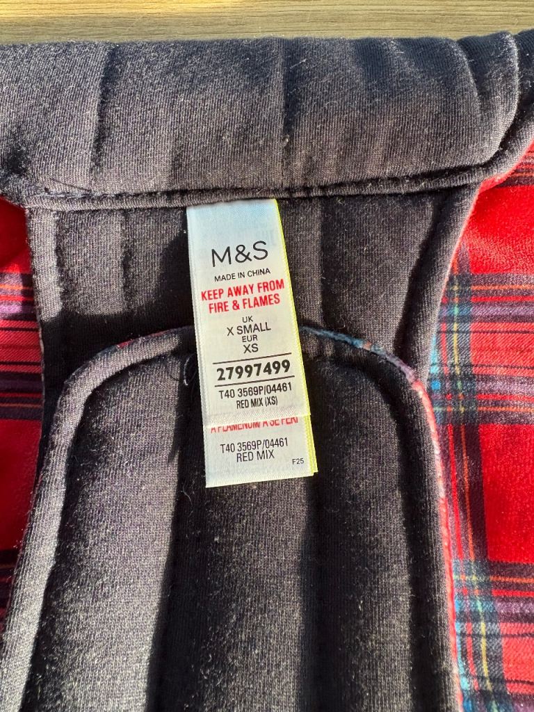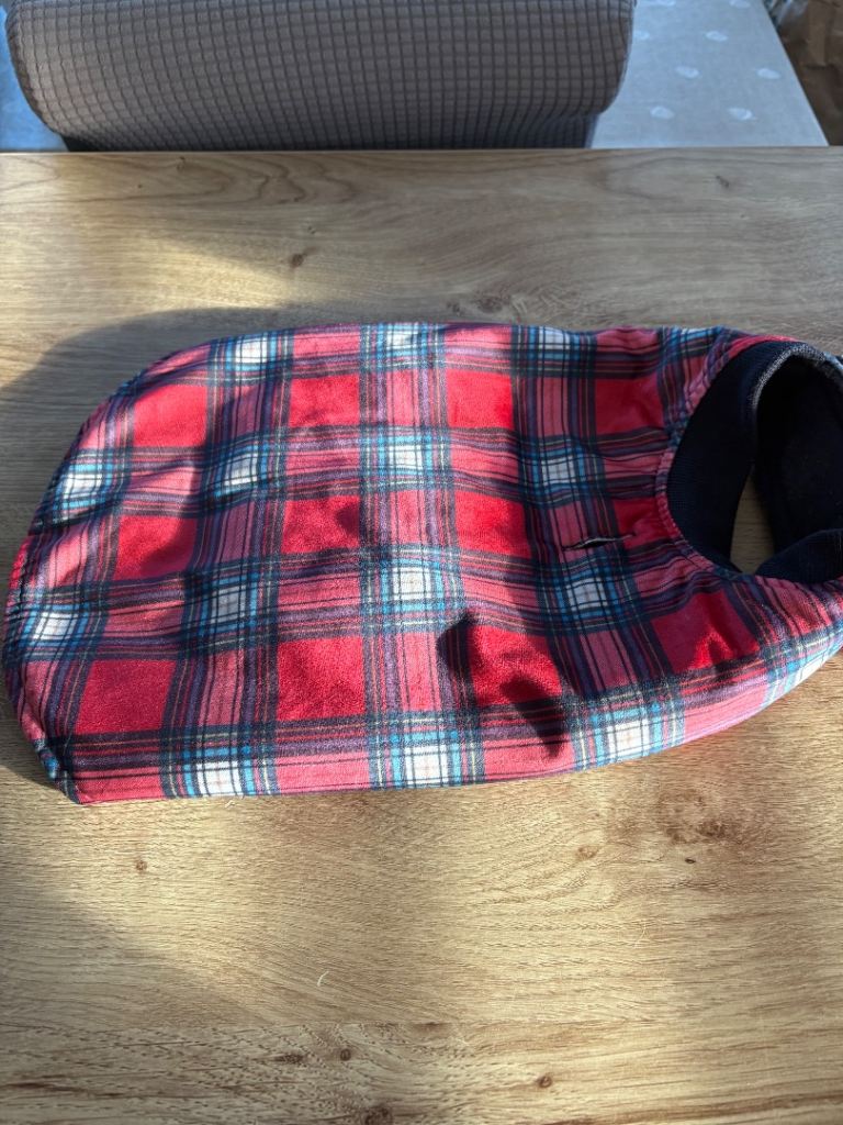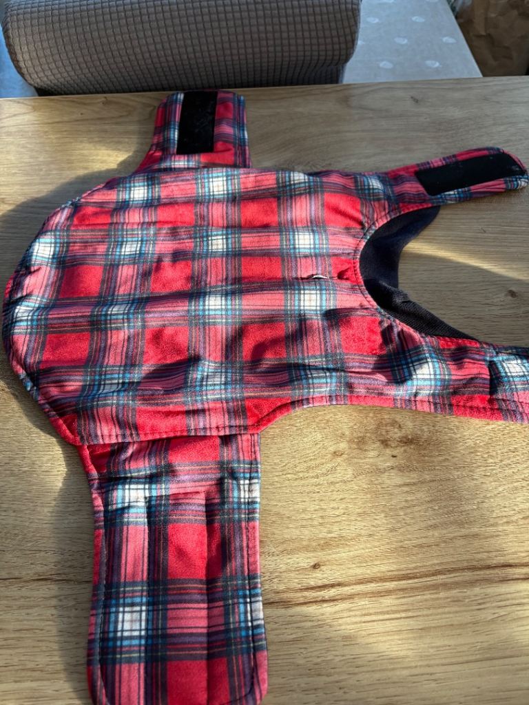 Dog coat, nice warm tartan. Size in picture and measurement. Only worn once so good condition.