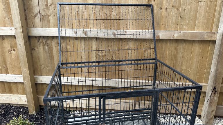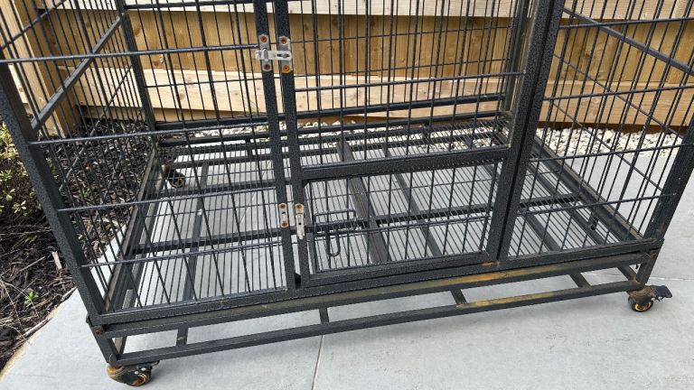XL dog create, stainless steel with wheels. Easy to move around and wash. Opens up from top and front. (Black)