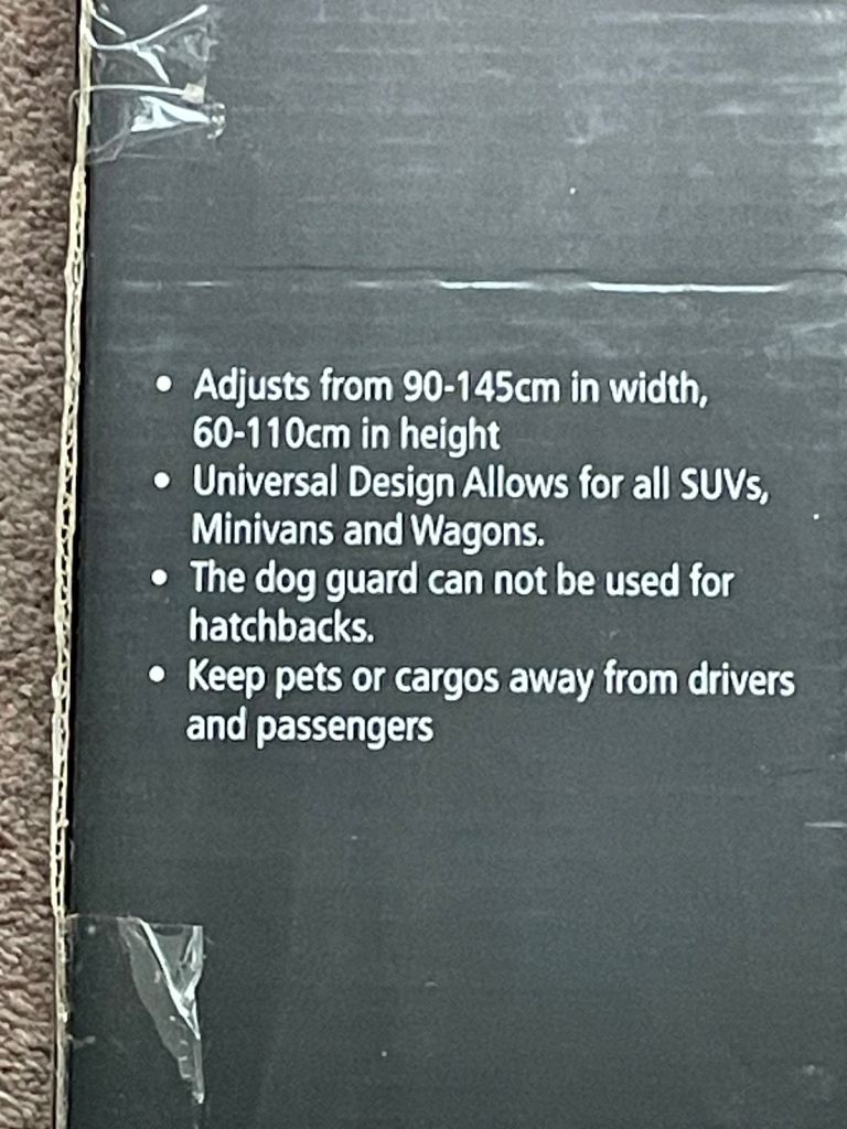 This is a brand new boxed dog guard never opened and never used. Fully adjustable 90-145cm width, 60-110cm height.