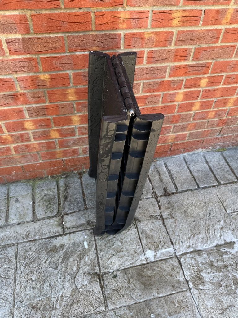 Ramp for helping pets into and out of the car and also used for anything similar. It is approx 5 ft long and 14 in wide, it folds in the middle and has a carry strap. It is new but has a few scratch marks when our old dog tried it froze and slid down it and won’t go near it