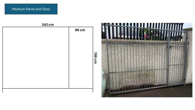 Posting for 10+ monthsDog Panels Fence (Several Sizes) and 2 Doors / Galvanised Steel / Gap 6.5-7cm / Height 186cm