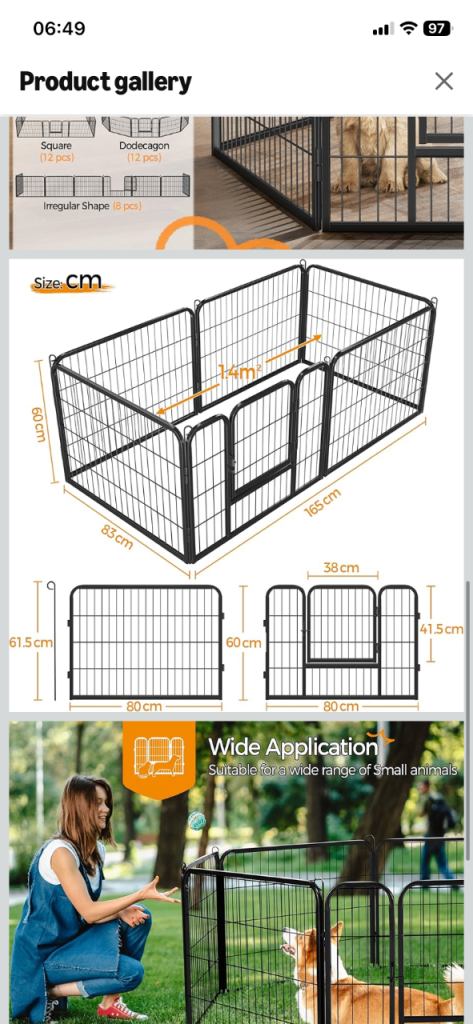 Posting for 16+ yearsDog puppy pen - 6 panels, 60cm high