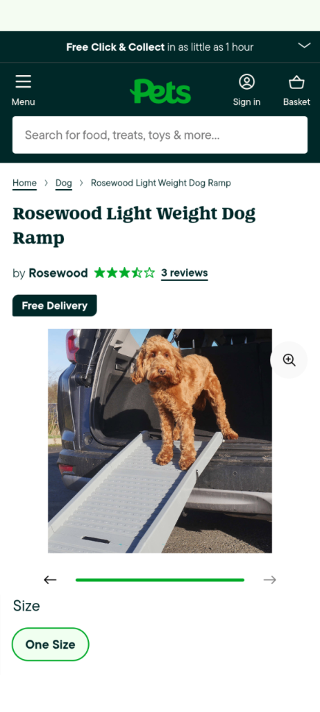 Lightweight folding dog ramp. Suitable for small or medium sized dog, although we used it for German Shepherd cross at 28kg.