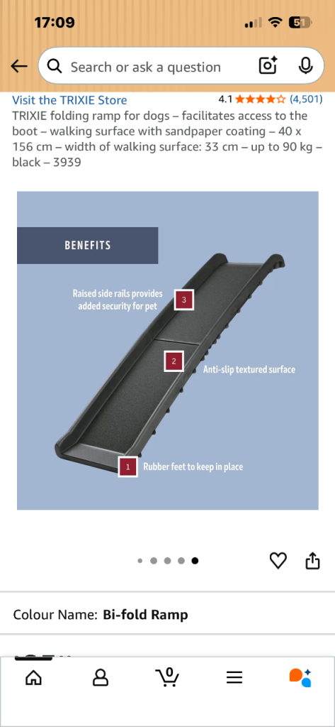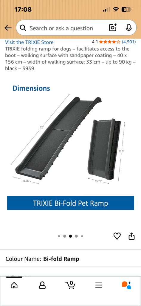 Trixie folding dog ramp, suitable for use with estate cars, to assist dogs getting in and out.