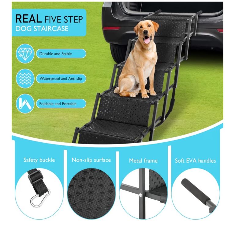 【High Safety & Sturdy and Durable】The Dog Ramps for Cars is made of high-grade metal, and the overall frame is stable, which can bear up to 200 lbs, ensuring that the dog will not shake when going up and down the stairs.