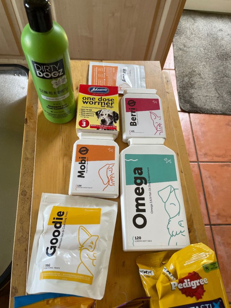 Selling some dog supplies and used dog accessories. Our dog has passed so passing on supplies and other useful equipment. Supplies are new. Equipment used but serviceable. Back seat dog guard, dog protective collar, harness, vitamins and some treats. Free. Collection only.