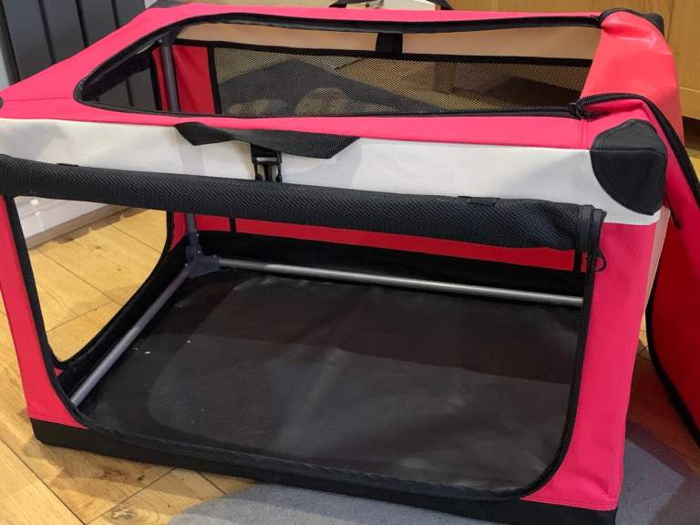 Folding dog crate almost new. Our puppy has quickly outgrown it! See photo for dimensions. Lightweight and easily carried. As new condition.