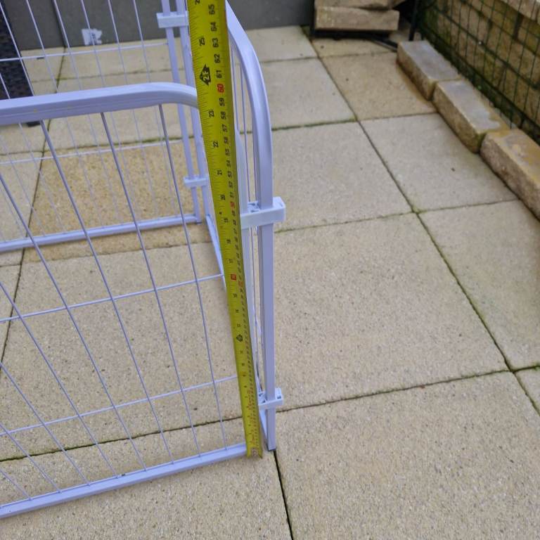 Sizes in photo, as new, used for one hour, decided to use a training crate instead.