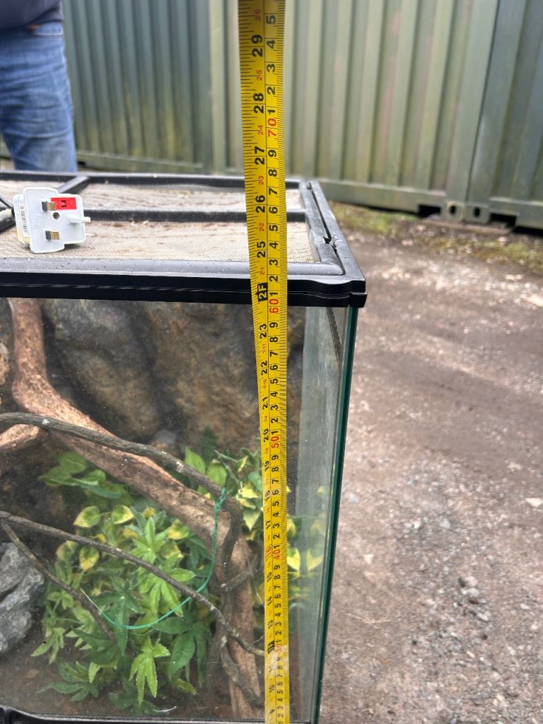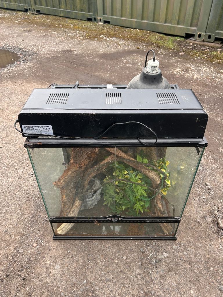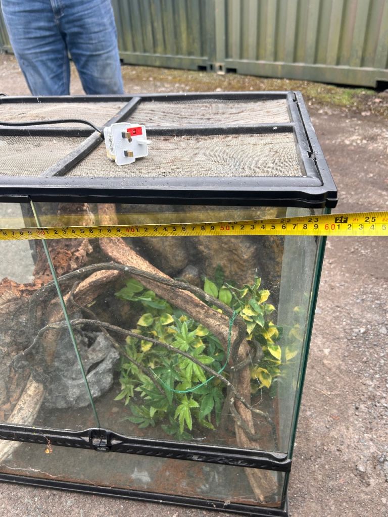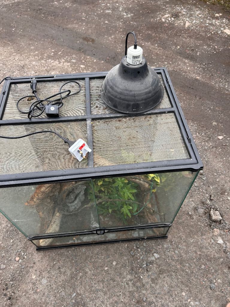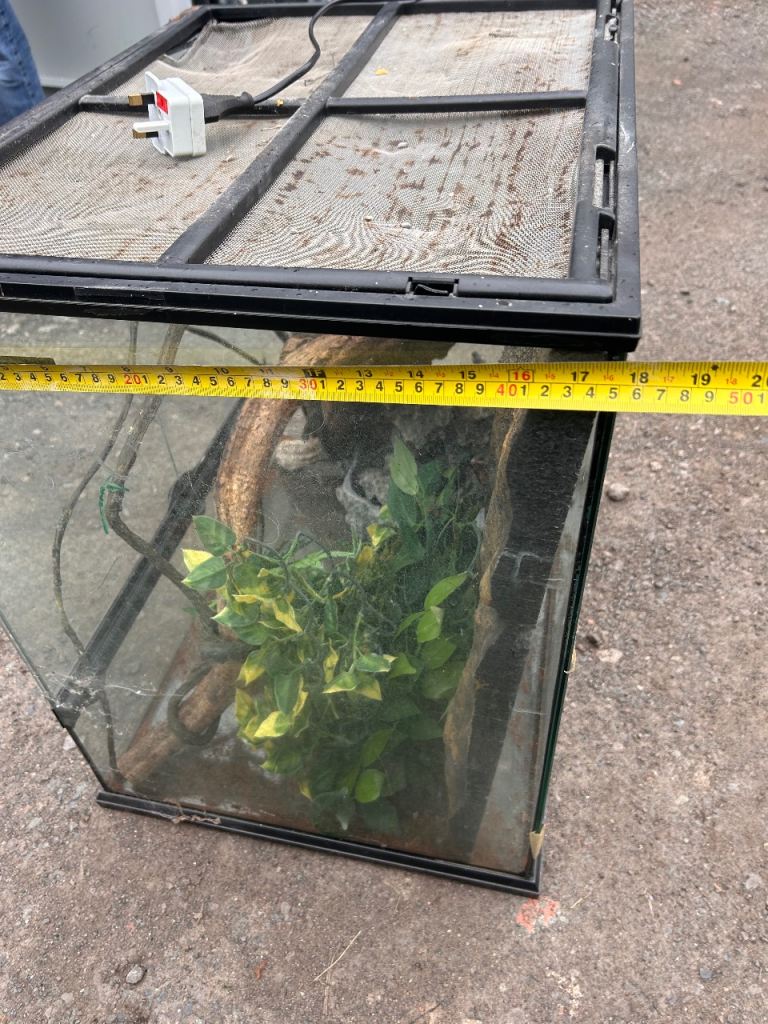 Selling Viv been in storage for a while all working comes with everything fogger light hood and heat hood plus waterfall everything you need just need to put new bulbs in and good to go good condition hole in mesh at the top where fogger goes in and mesh pulled out a little in corner can be fix but see photos selling cheap no offers as is price at good price Size 60x60x45
