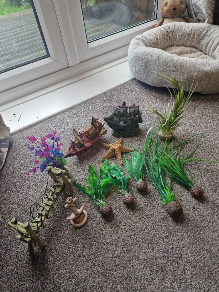 Extra large decor. Nice main attraction for a large fish tank. Next to bottle of water to show size