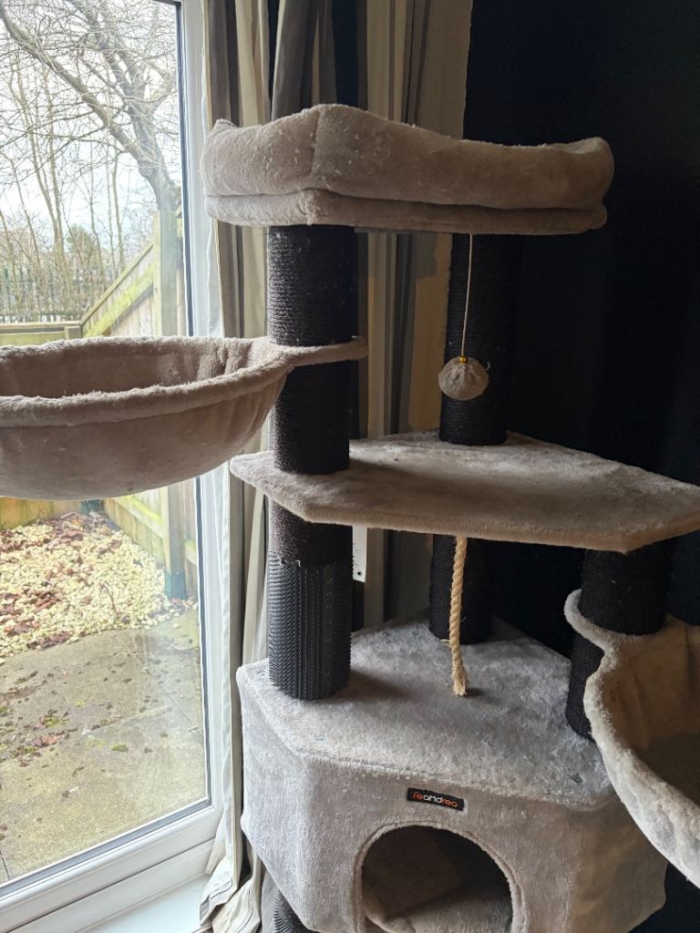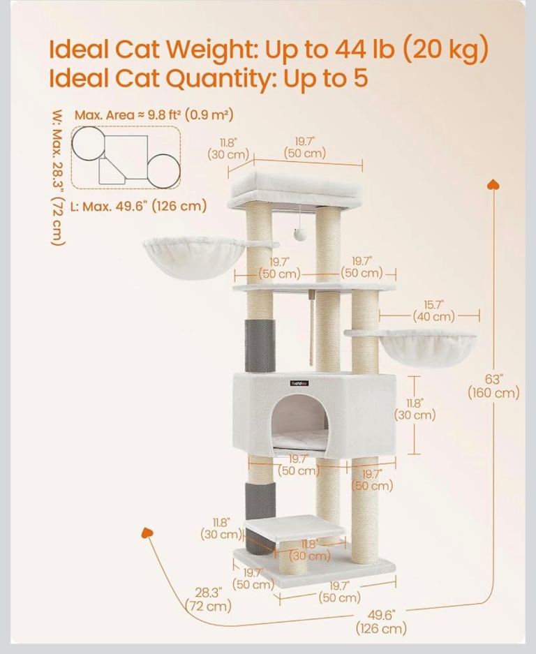 Heavy-Duty Cat Tower with Warm Pads, 2 Self-Groomers, 9 Scratching Posts, Large Perch, Cave, Baskets, 50 x 50 x 160 cm