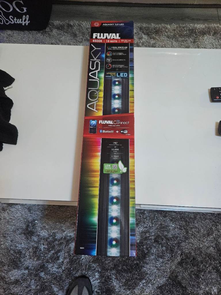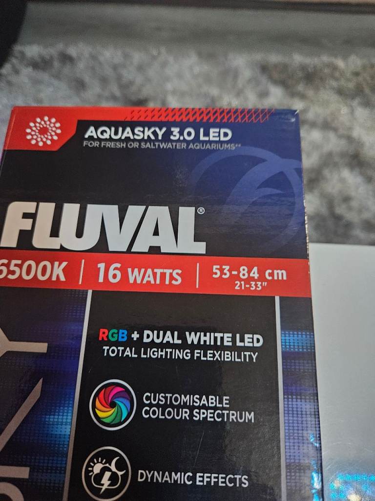 Hi for sale is a fluval aquasky 3 led aquarium light this is used with an app joyous can basically set a lot of different colours modes etc only selling as upgrading my light these are £80new I'll accept£45 as it's used but can show fully working