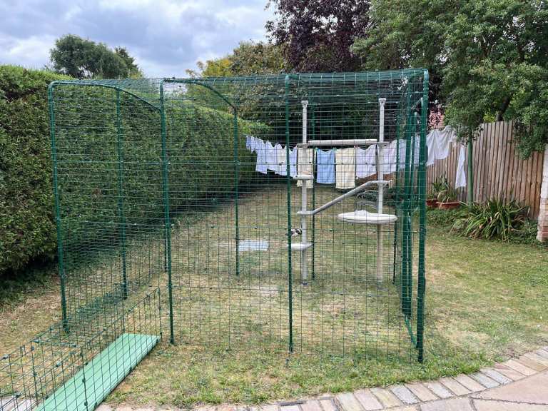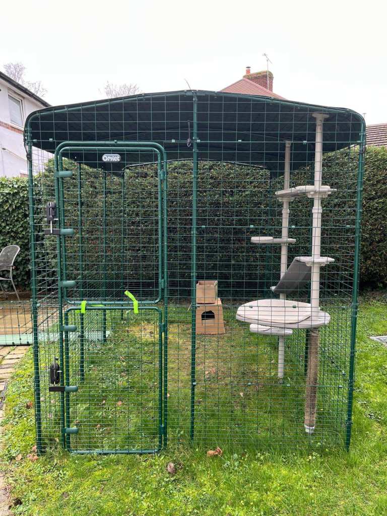 All items were bought new from Omlet last year and only set up, outside, in August 2025. Unfortunately, the cat we installed the catio for never managed to use it. Consequently, everything's in fantastic condition. The catio is currently set up in our back garden. All items can be found on the Omlet website.