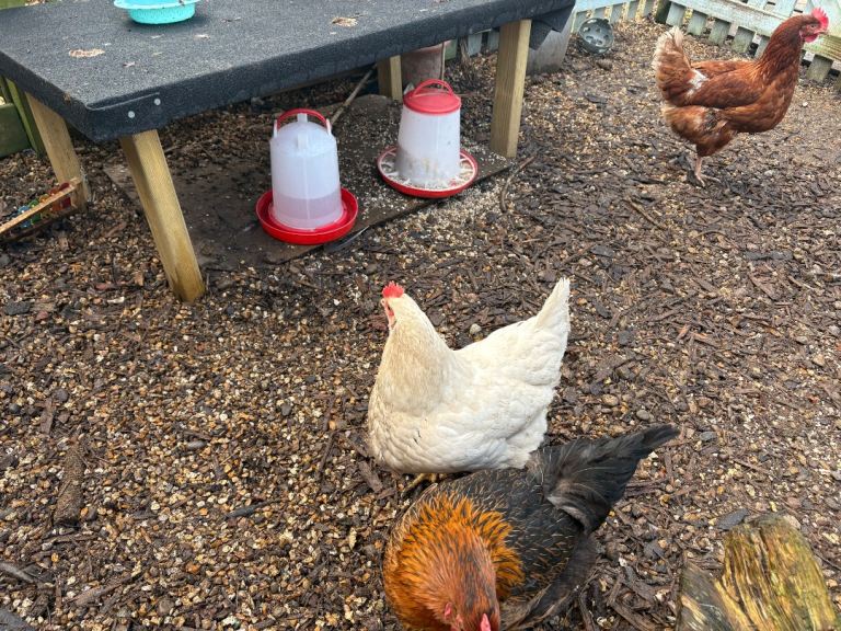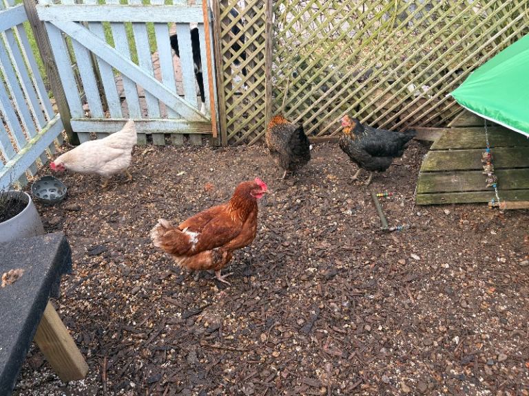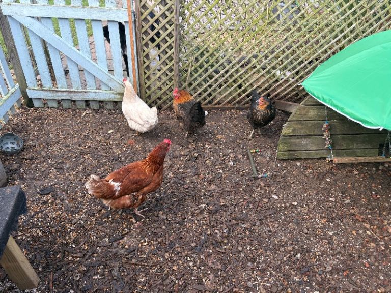 All you need to keep some chickens..having to pass on as our dogs become obsessed with them..all in working order, feeders, coop, automatic door, brolly (if required) we tend to get 2-3 eggs a day..chickens are no bother