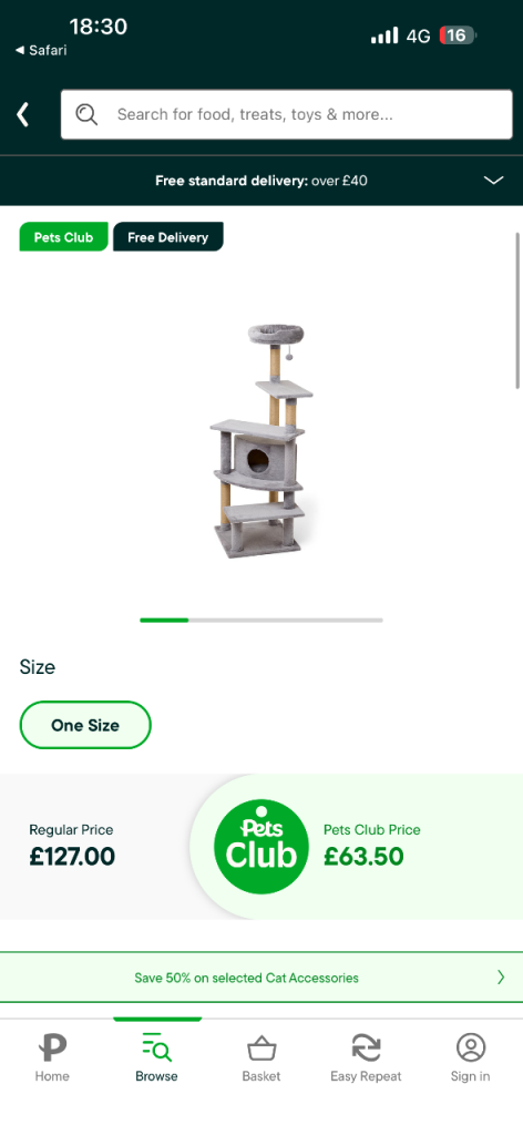Used cat tree. Bought in January 2025 but our cat recently passed away. Paid £120 ish for it, it’s currently on an offer for £67 so I am looking for £50. Open to sensible offers.