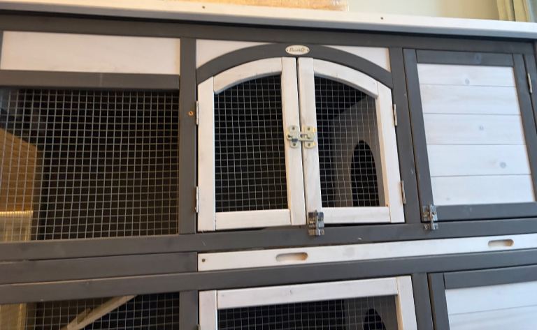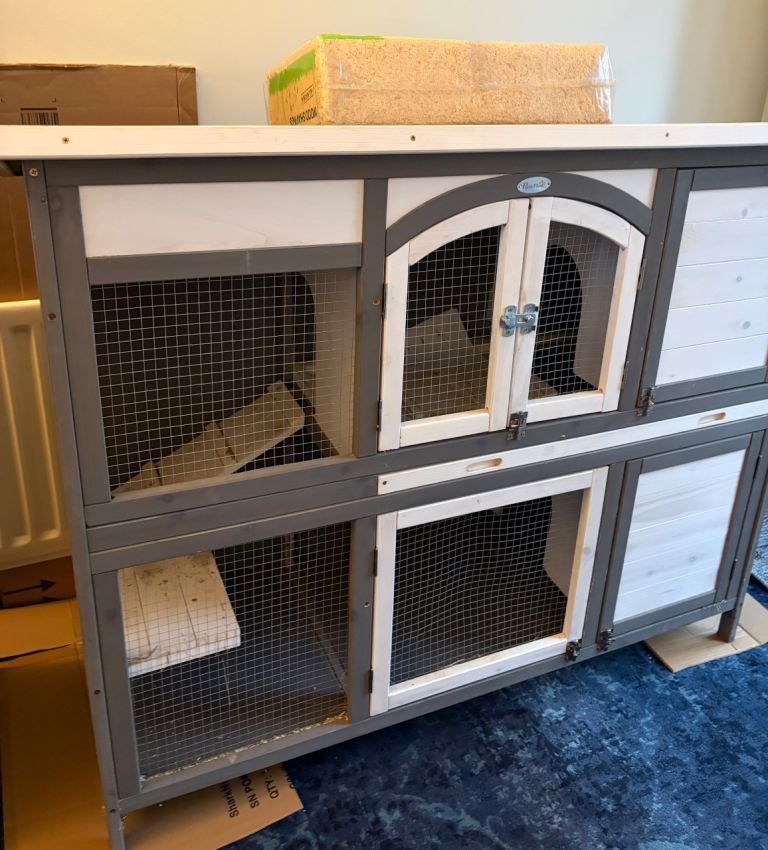 Used inside for 1 year for our 2 guinea pigs (sows) (used from 4 months old to 16 months old) and changed set up has caused us to sell the hutch on.