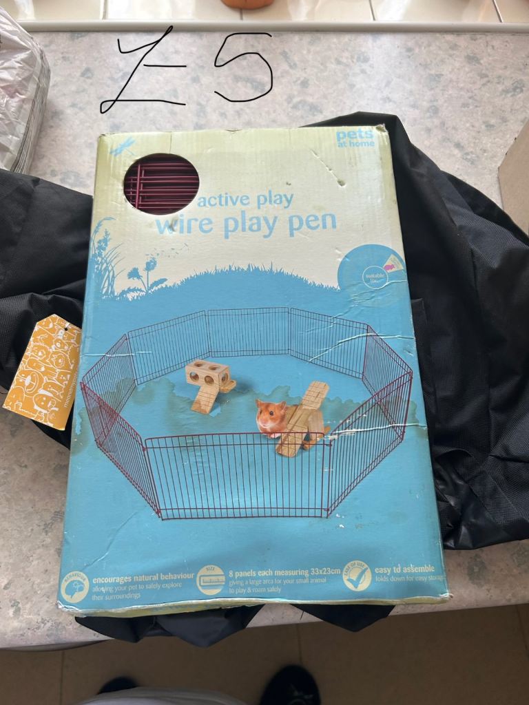 2x playpen the cheaper one has some damage on the fabric that goes on the bottom and has no box. All sorts of stuff . Prices are on the pictures . The pet carrier can be opened in 3 ways . All in good condion . Collection only so14