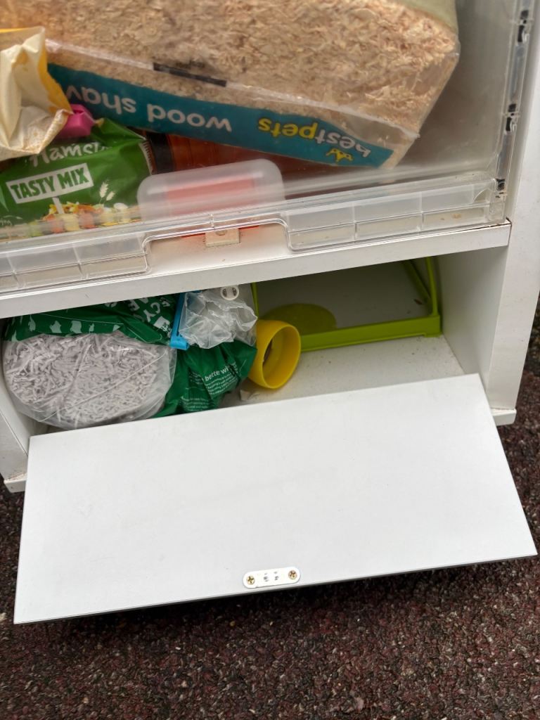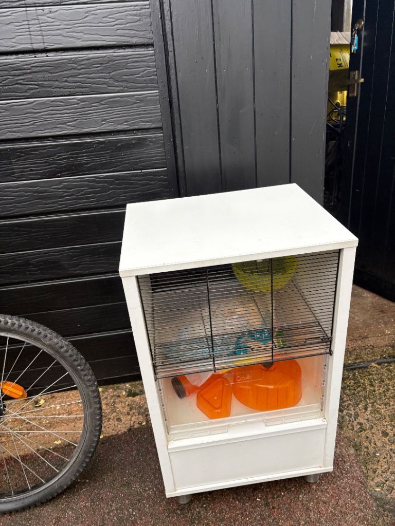 Used but still in good condition Hamster cage. Nothing major wrong with but will need a really good clean. Comes with some sawdust and bedding. Please look at photos carefully.