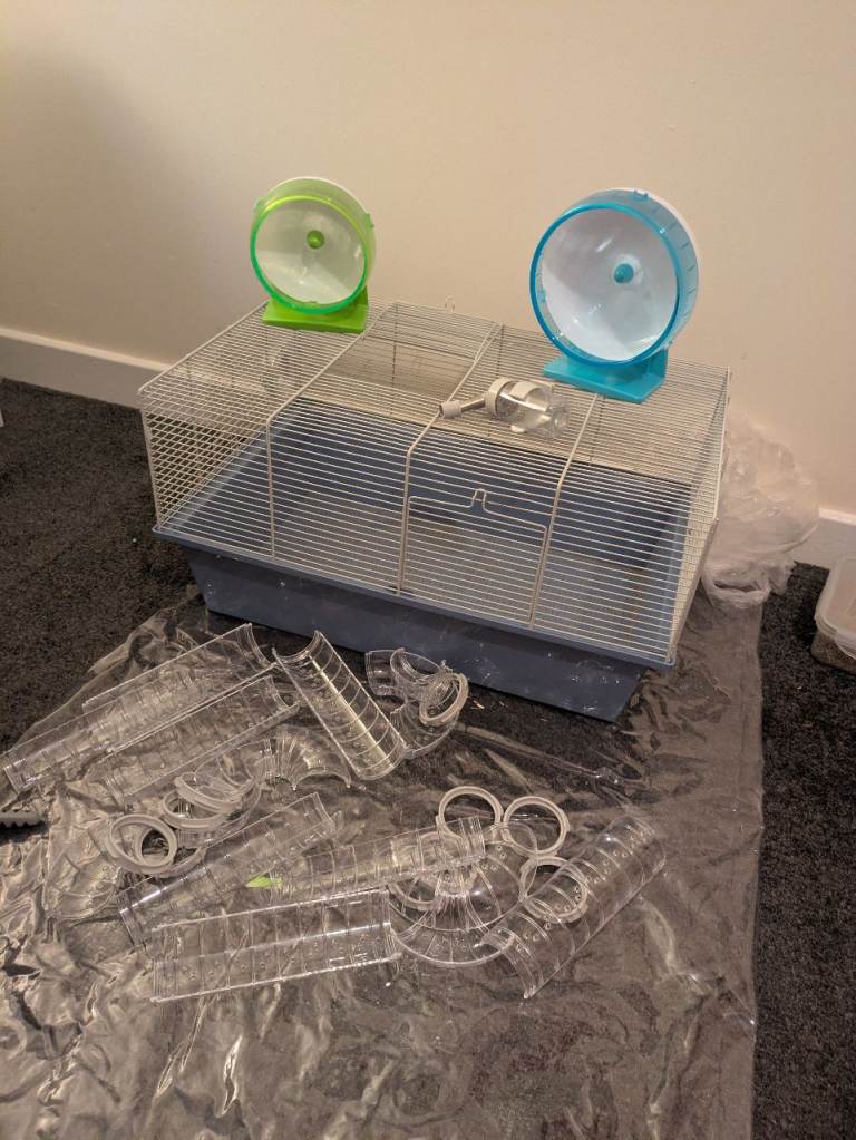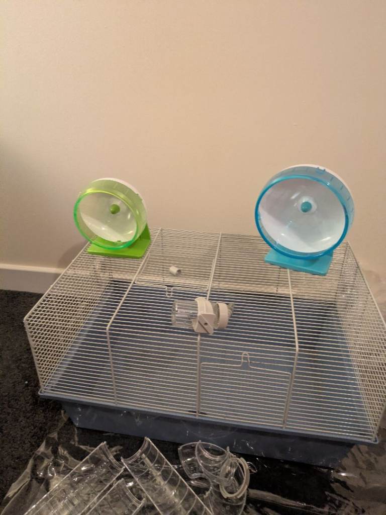 Complete cage with tunnel, running wheels and drink bottle. Perfect for rats, mouses and hamsters.