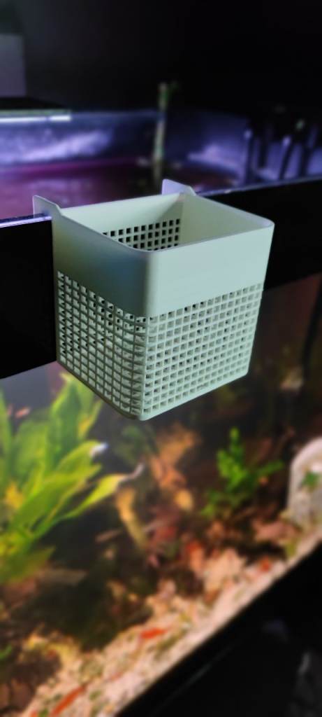 Hangs on the inside of tank for breeding or isolation of a fish.